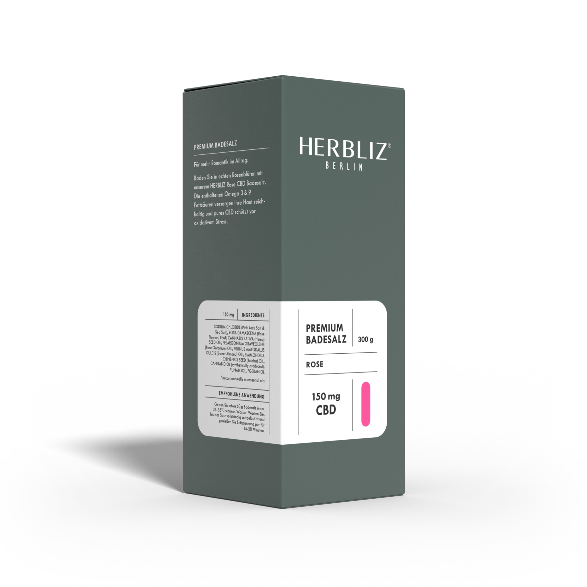 Mit dem HERBLIZ Rose CBD Badesalz baden Sie in echten Rosenblättern, 150 mg CBD-Extrakt und natürlichem Steinsalz und Meersalz. Das Magnesium des Salzes wirkt wohltuend bei Muskelverspannungen, hat eine tiefenreinigende Wirkung und hilft bei der Entgiftung der Haut. Rosenblätter wirken ausgleichend und beruhigen sanft die Haut.