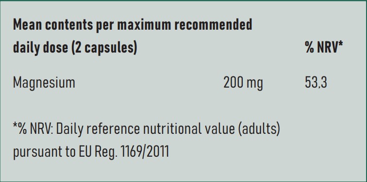 Trimagnesiumdicitrat wasserfrei, Maltodextrin, HPMC (Hydroxipropilmetilcellulose), Trennmittel: Silizium Kohlendioxid.