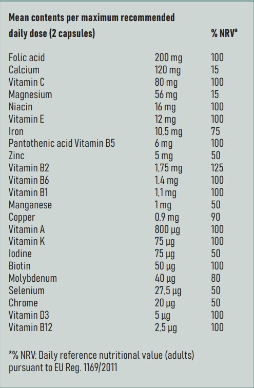 Die Dosierung deckt den Tagesbedarf an den wichtigsten Vitalstoffen und Vitalstoffe und beugt so Mangelerscheinungen vor.