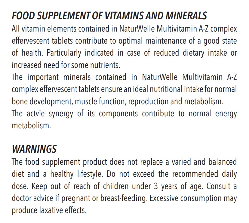 Artikelnummer: Multivitamin A-Z complex effervescent tablets N20 Kategorie: Nahrungsergänzungsmittel