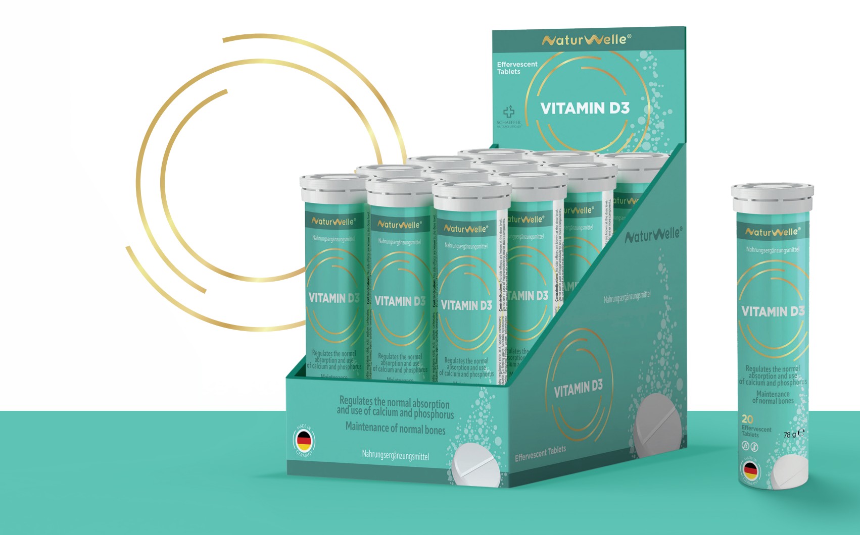 Nahrungsergänzungsmittel auf basis von vitamin d3. Brausetabletten.