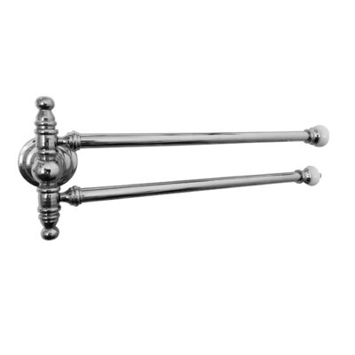 Dieser stilvolle und praktische Handtuchhalter (Badetuchhalter) in Chrom ist eine ideale Kombination aus Funktionalität und Qualität durch seine Beschaffenheit aus hochwertigem weißem Porzellan und verchromtem Messing in Hochglanzoptik. Er besteht aus zwei beweglichen Armen und bietet Platz für zwei Handtücher.