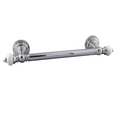 Exklusiver 2-armiger Handtuchhalter 38 cm aus hochwertigen Materialien – verchromtem Messing und weißem handbemaltem Qualitätsporzellan (keine Keramik!) – ist ideal für Ihr Badezimmer und Gäste-WC. Der handbemalte Handtuchhalter in Premium-Qualität zeichnet sich durch ausgezeichnetes elegantes und zeitloses Design, hohe Stabilität des Materials, Langlebigkeit und makellose Oberfläche aus. Seine verchromte Oberfläche verliert auch nach Jahren seinen Glanz nicht.