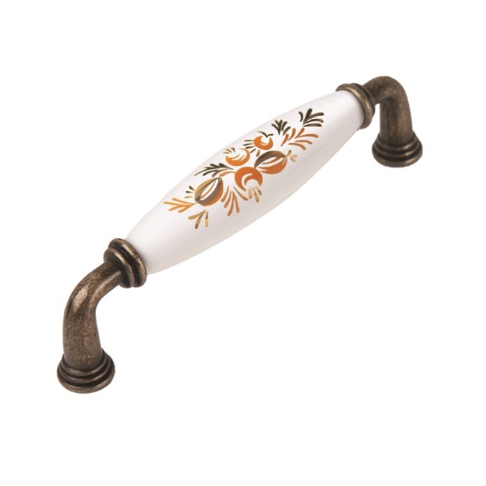 Exklusiver Möbelgriff (Porzellangriff, Schrankgriff, Küchengriff, Kommodengriff) von STELO aus hochwertigem weißem Porzellan (echtes Porzellan, keine Keramik!) und Zamak mit schwarz-matter Lackierung in Antik-Optik. Der Bohrlochabstand – 160 mm. Das Produkt wird in einer Porzellanmanufaktur handgefertigt!