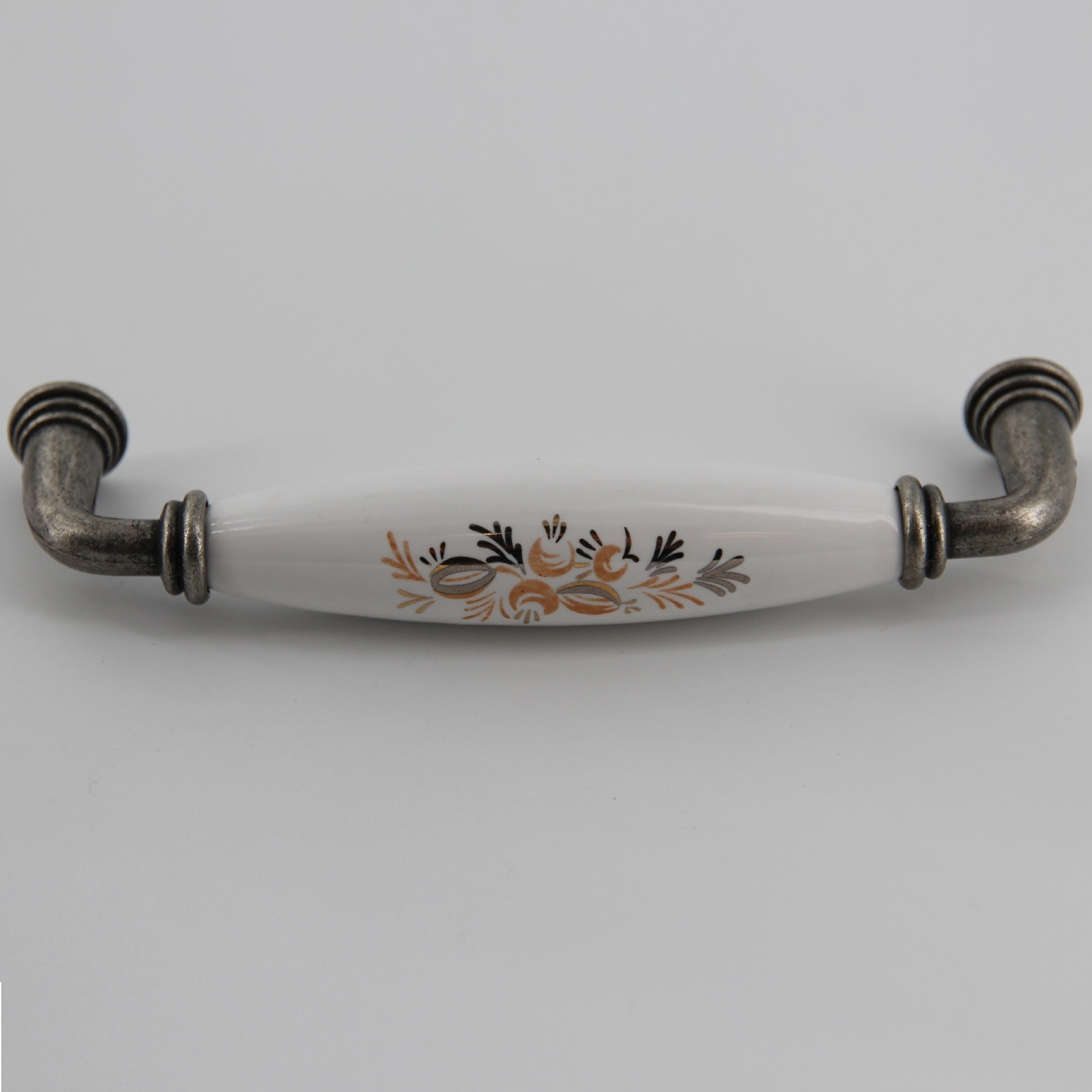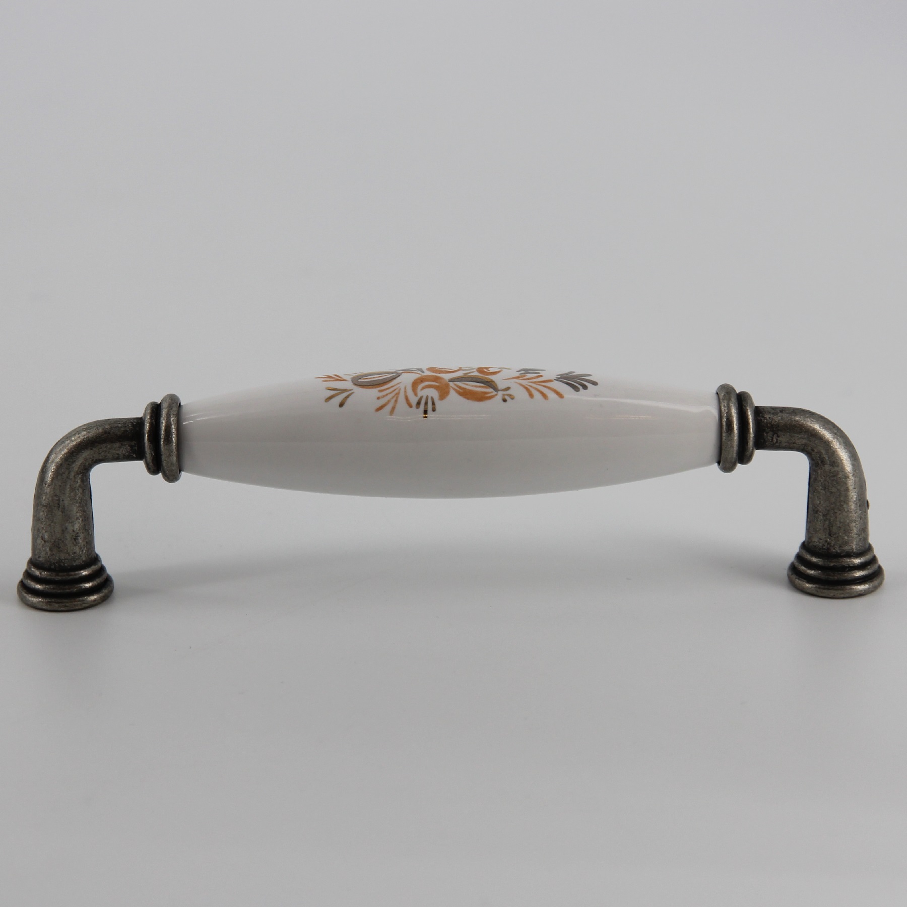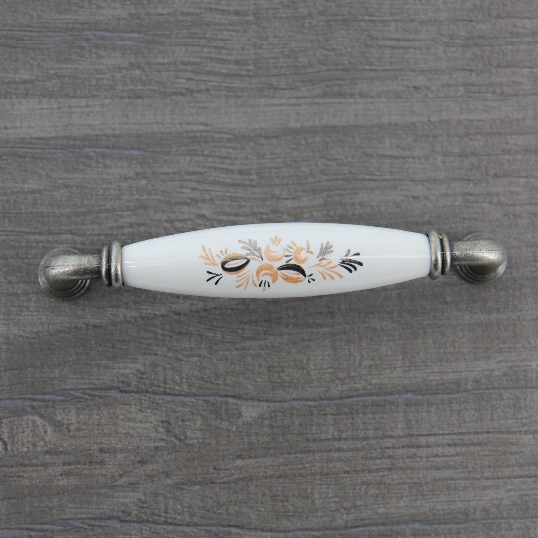 Exklusiver Möbelgriff (Küchengriff, Schrankgriff, Kommodengriff) „Ast braun-grau“ von STELO aus hochwertigem weißem Porzellan (echtes Porzellan, keine Keramik!) und Zamak in Antikgrau-Look. Das Produkt wird in einer Porzellanmanufaktur handgefertigt!