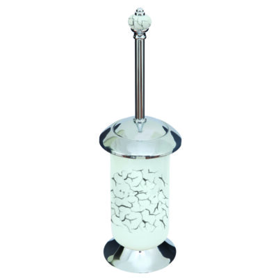 Exklusive freistehende WC-Bürstengarnitur aus hochwertigen Materialien – verchromtem Messing und weißem handbemaltem Qualitätsporzellan (keine Keramik!) – sieht edel aus und wertet jedes Bad oder Gäste-WC auf. Die handbemalte WC-Bürstengarnitur in Premium-Qualität zeichnet sich durch ausgezeichnetes elegantes und zeitloses Design, hohe Stabilität des Materials, Langlebigkeit und makellose Oberfläche aus.