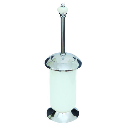 Exklusiver WC-Bürstenhalter mit WC-Bürste aus hochwertigen Materialien – verchromtem Messing und weißem handbemaltem Qualitätsporzellan (keine Keramik!) – sieht edel aus und wertet jedes Bad oder Gäste-WC auf. Der handbemalte WC-Bürstenhalter in Premium-Qualität zeichnet sich durch ausgezeichnetes elegantes und zeitloses Design, hohe Stabilität des Materials, Langlebigkeit und makellose Oberfläche aus.