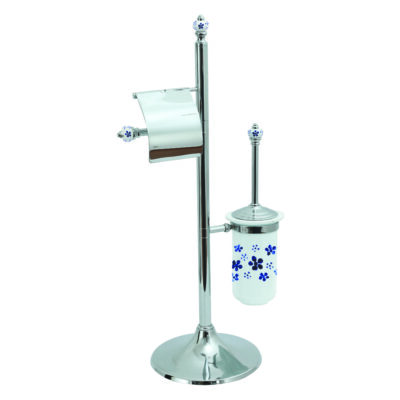 Exklusiver WC-Bürstenhalter mit Bürste von STELO aus hochwertigem verchromtem Messing und weißem handbemaltem Porzellan (echtes Porzellan, keine Keramik!). Exklusives Premiumdesign mit Blumenmotiv (Dekor 56). Meisterhafte Handwerkkunst. Das Produkt wird in Handarbeit in einer Porzellanmanufaktur hergestellt und montiert!