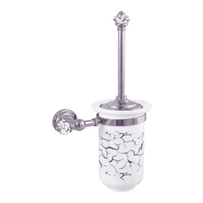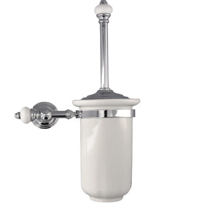 Diese stilvolle und elegante standfeste WC-Bürstengarnitur ist eine ideale Kombination aus Funktionalität und Qualität durch seine Beschaffenheit aus hochwertigem weißem Porzellan und verchromtem Messing in Hochglanzoptik. Sie besteht aus einem Bürstenhalter und einer WC-Bürste mit strapazier- und anpassungsfähigen Borsten, die im Lieferumfang enthalten ist. Der Griff verfügt über eine langlebige, pflegeleichte Chromoberfläche, die auch nach Jahren nicht an Glanz verliert.